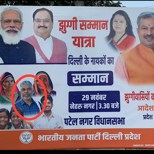 ஏழைகளுக்கான நலத்திட்ட விளம்பர பேனர்களில், தமிழகத்தின் மூத்த எழுத்தாளர் பெருமாள் முருகனின் படத்தை, பயனாளர்களில் ஒருவராக இடம்பெறச் செய்து சர்ச்சையைக் கிளப்பியிருக்கின்றனர் டெல்லி பா.ஜ.க-வினர்.